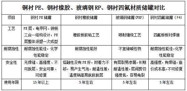 12、全塑PE儲罐或鋼襯塑PE/PO儲罐可盛裝的化學品非常廣泛,可用于無機酸、有機酸、無機堿、有機堿和有機化合物。但不宜盛裝濃硫酸、濃硝酸等強氧化劑,能使PE溶脹的芳烴、鹵代芳烴等溶劑。